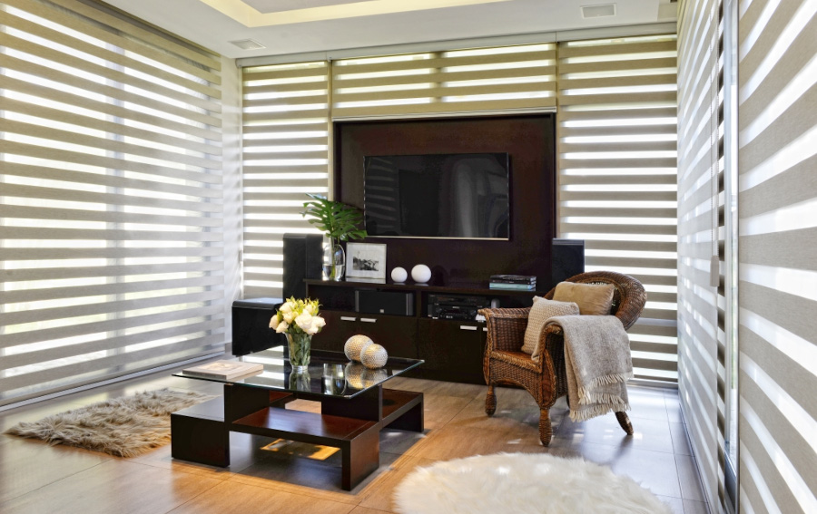 Su accionamiento desplaza el paño de tela interponiendo o separando las franjas, permitiendo la graduación de luz, regulando la privacidad y creando una calidez única para tus espacios.